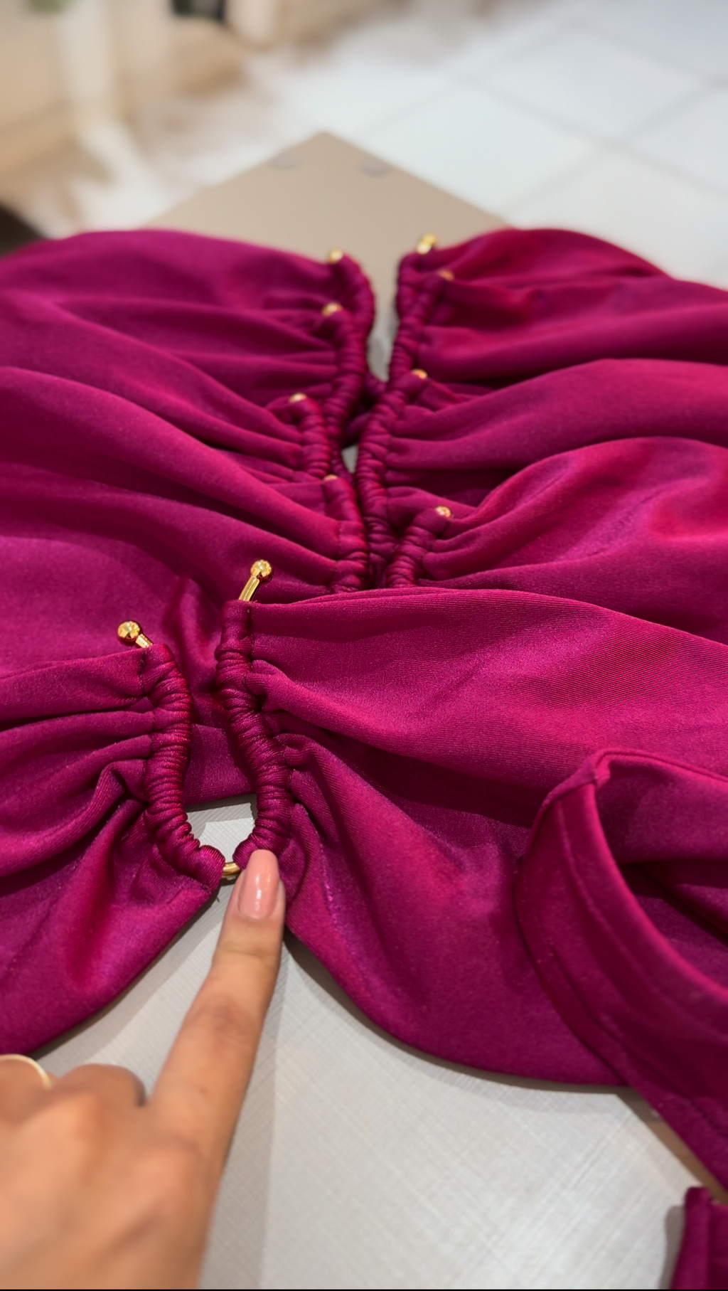 - Tecido com leve brilho