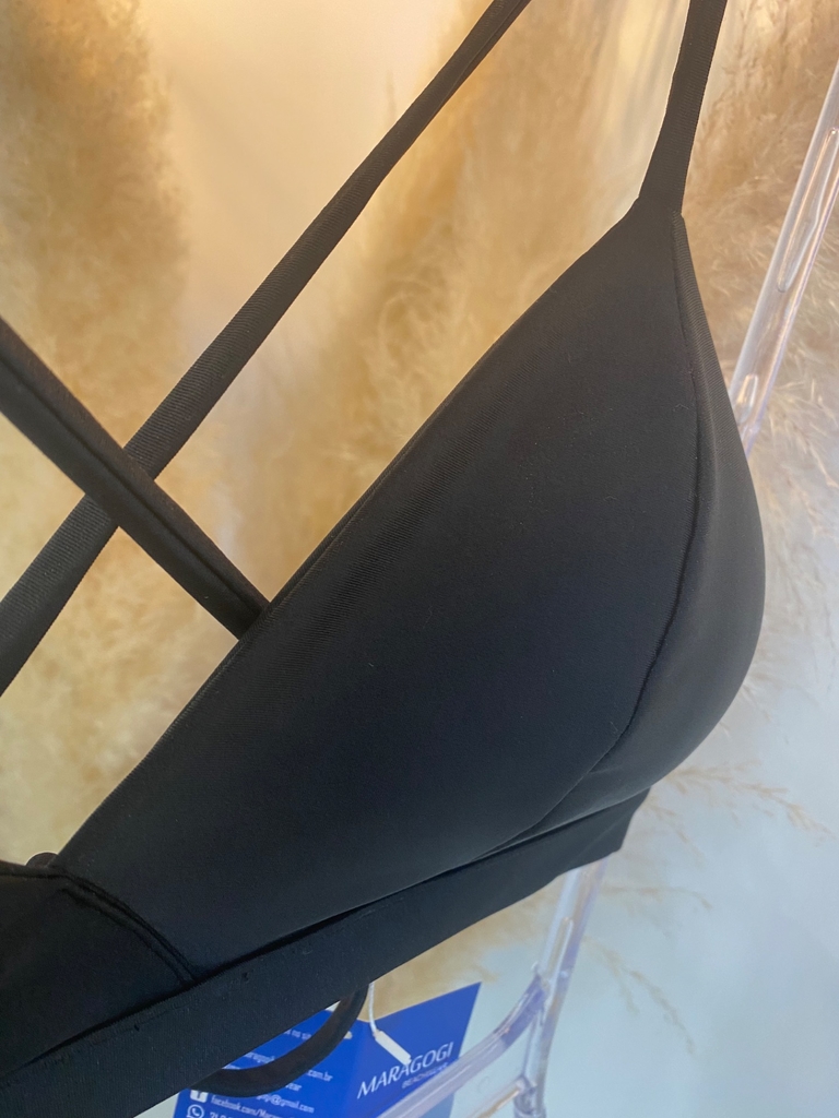 Por apresentar um formato triangular e possuir a opção de bojo seu formato valoriza bustos pequenos. Além disso sua modelagem causa o efeito de “juntar” os seios.