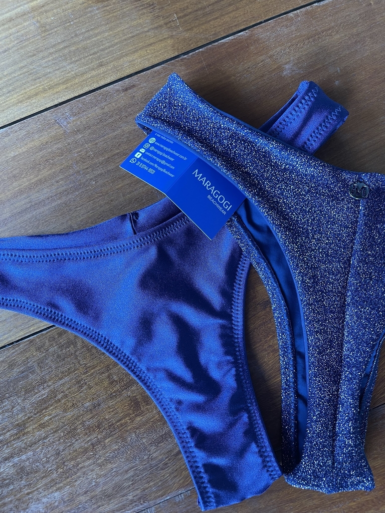 A parte de cima é um top fixo, que possui base elástica proporcionando conforto e segurança evitando que o busto saia na parte de baixo. Seu formato é triangular que proporciona uma marca similar ao top cortininha. Possui abertura para bojo removível (a peça é enviada sem bojo, caso deseje o bojo favor informar no pedido).