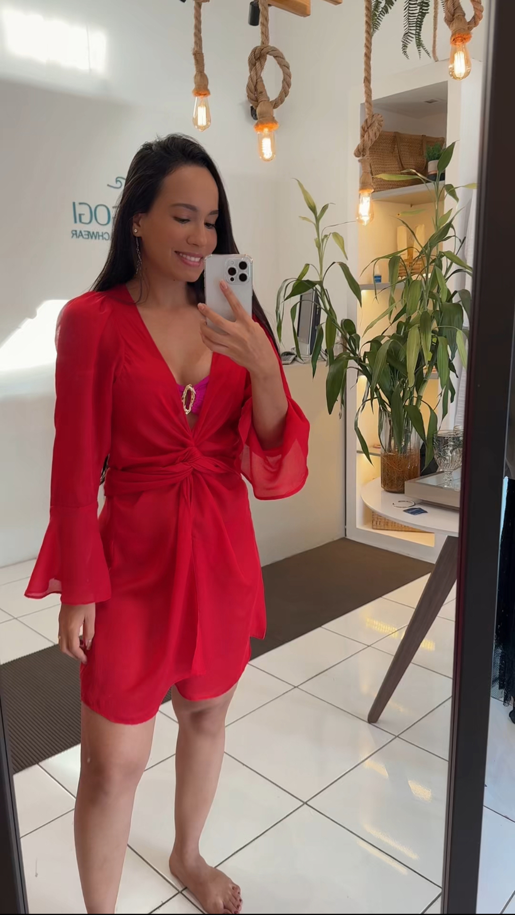 Saída de praia elegante estilo vestido. Pode ser usada fechada criando detalhe na região do abdomen afinando a cintura ou aberta com as pontas soltas criando leveza e fluidez.
